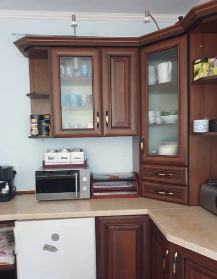 Ciężko odświeżyć kuchnię bez inwestycji w nowe meble i sprzęt AGD. Niektórzy decydują się na rozwiązanie kompromisowe, jakim jest przemalowanie starych niemodnych frontów szafek. Gospodarze opisywanej kuchni rozważali ten wariant i doszli do wniosku, że taki lifting byłby karkołomny i niewystarczający. W starej kuchni lodówka mieściła się pod kuchennym blatem – zarówno gospodarze, jak i goście narzekali na zbyt małą przestrzeń do przechowywania. Zamiana na większą lodówkę wymagałaby nowego, inaczej przyciętego blatu, a także wypełnienia przestrzeni pod blatem w miejscu, gdzie była lodówka. Byłyby to spore koszty, które tylko w niewielkim stopniu rozwiązałyby funkcjonalność kuchni. Drugim powodem, dla którego odstąpiono od liftingu, był stan korpusów – w wielu miejscach były one mocno zniszczone. Ponadto mimo sporej powierzchni do przechowywania szafki nie były praktyczne – zabudowany narożnik miał głębokie, trudno dostępne półki, podobnie było z poręcznością przeszklonej kredensowej nadstawki.