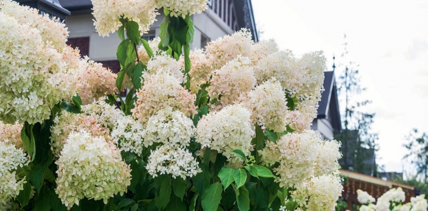 Hortensje bukietowe warto sadzić wszędzie tam, gdzie oczekujemy spektakularnego widoku. Krzewy te doskonale nadają się do nasadzeń kaskadowych, kiedy to w pierwszej połowie sezonu tworzą zielone tło dla innych roślin ozdobnych – kwitnących bylin i traw – a w drugiej połowie lata wybuchają burzą groniastych kwiatostanów, przyciągających uwagę. Hortensje bukietowe potrafią zostać z nami przez całą zimę. Jeśli krzewy posadzone są w zacisznym, osłoniętym od wiatru miejscu, kwiaty dekoracyjnie zaschną na łodygach, a przyprószone śniegiem nadal zapewnią odrobinę ozdoby w smutnym już ogrodzie. Hortensje bukietowe występują w szerokiej gamie odmian, które różnią się od siebie wielkością, kształtem oraz kolorem kwiatostanów. Znajdziemy te niezwykle pełne, groniaste z kwiatami o zbitej soczystej objętości, jak i te mocno stożkowate, przerzedzone, różniące się wielkością drobnych składowych w ramach jednego kwiatostanu kwiatków. Gatunki hortensji bukietowych to również cała gama odcieni bieli, seledynu, różu i mocnej purpury, czasem układających się gradientem w jednym kwiecie. Hortensje bukietowe w czasie kwitnienia wspaniale się przebarwiają, świeże wczesne kwiaty barwy białej wraz z upływem czasu potrafią zmienić kolor nawet na ciemnoróżowy. To zapewnia w ogrodzie zmienną i bardzo efektowną dekorację. Hortensje można sadzić niezależnie jako krzewy samodzielne, stanowiące główny walor estetyczny w ogrodzie. Doskonale jednak nadają się jako elementy rabat, szczególnie o wspomnianej piętrowej kompozycji. Wyglądają niezwykle dekoracyjne stanowiąc również sąsiedztwo ogrodzenia, kiedy spektakularnie przewieszają się bukietem kwiatostanów przez płot. Trzeba bowiem pamiętać, że hortensje nawet regularnie (zgodnie z zasadami pielęgnacji) przycinane dość szybko się rozrastają. W zależności od odmiany potrafią zbudować wysoki pokrój, nawet do 3 m. Dlatego jeśli zależy nam na dekoracyjnych kwiatach, ale nie ekspansywnym rozroście, wybierzmy odmiany karłowate i niskie.