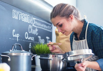 Do najbardziej istotnych czynników decydujących o komforcie przyrządzania posiłków należy wysokość blatów roboczych. Ma ona wpływ nie tylko na sprawność, np. szybkość gotowania, ale też na nasze zdrowie. Większość czynności związanych z gotowaniem wykonujemy na stojąco. Nieprawidłowa postawa generuje choroby kręgosłupa czy wzroku. Kluczowym czynnikiem decydującym o wysokości blatu roboczego jest nasz wzrost. Typowe projekty przewidują jego usytuowanie na poziomie 85-86 cm od podłogi. Wiąże się to ze standardową wysokością szafek kuchennych, która wynosi 82 cm. Po dodaniu wysokości blatu otrzymamy wysokość naszej przestrzeni roboczej. Jeśli prace kuchenne wykonują wyższe osoby, zdecydujmy się na blat położony wyżej. Wysokość szafek możemy podnieść, wykorzystując modele, w których zastosowano regulowane nóżki. Optymalną dla danej osoby wysokość blatu zaplanujemy, sprawdzając uprzednio, na jakiej wysokości znajduje się jej łokieć – po jego zgięciu blat powinien być położony 10-15 cm poniżej przedramienia. Wysokość blatu powinna być również dostosowana do rodzaju wykonywanych prac. Podczas krojenia czy siekania najlepiej sprawdzi się blat umieszczony na poziomie 89- -91 cm. Czynności wymagające dużego nacisku, takie jak wyrabianie i wałkowanie ciasta komfortowo wykonamy na blacie usytuowanym na wysokości 75-80 cm.