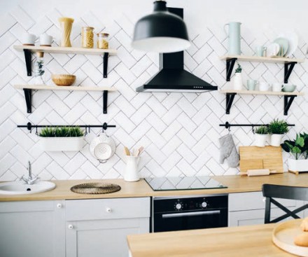 Ściana nad blatem użytkowym jest szczególnie narażona na zabrudzenia, a nawet obtłuczenia, dlatego tak istotny jest sposób jej wykończenia. Do klasycznych rozwiązań należą płytki ceramiczne. Dobrze znoszą wilgoć i długotrwałe działanie wody. Ich atutem jest również bogactwo wzorów, form i faktur. Użycie płytek pozwoli wyczarować na ścianie nie tylko klasyczne aranżacje. Nowoczesne technologie sprawiły, że ceramika odtwarza wzory, faktury i formaty charakterystyczne dla drewna czy kamienia. Materiałem równie chętnie używanym na ściany w strefie roboczej kuchni jest kamień. Barierą dla wielu inwestorów jest jego cena, natomiast atutem niepowtarzalność oraz naturalne pochodzenie. Najczęściej sięgamy po granit lub trawertyn – ten rodzaj wapienia wymaga jednak zaimpregnowania.