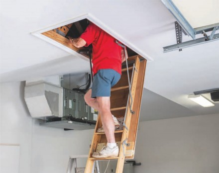 Po złożeniu schodów strychowych otwór w stropie zostaje zamknięty przez klapę, która jest do nich od spodu przymocowana. Zazwyczaj wykonana jest z drewna lub płyt drewnopochodnych. Aby zamaskować klapę, wystarczy pomalować ją na taki sam kolor jak sufit, a naokoło zamontować ozdobne listwy wykończeniowe. Zamknięta klapa nie rzuca się w oczy, widać ją dopiero po bliższym przyjrzeniu. Pamiętajmy, że schody z nieocieplaną klapą montujemy tylko między pomieszczeniami ogrzewanymi lub ocieplonymi. Mogą zatem prowadzić na strych, który ma ocieplenie ułożone w dachu lub na dachu, a nie na stropie. Natomiast ocieplone klapy stosowane są, gdy poddasze ma izolację termiczną ułożoną na stropie lub między jego elementami konstrukcyjnymi (drewniany strop belkowy).