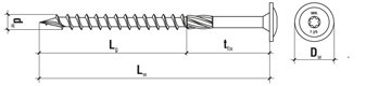 Wkręt konstrukcyjny z łbem podkładkowym i gniazdem TX WKCP - 6 x 220 mm, 6 x 240 mm, 6 x 260 mm, 6 x 280 mm, 6 x 300 mm, 8 x 40 mm, 8 x 50 mm, 8 x 60 mm, 8 x 320 mm, 8 x 340 mm, 8 x 360 mm, 8 x 380 mm, 8 x 40 mm, 10 x 360 mm, 10 x 380 mm, 10 x 400 mm